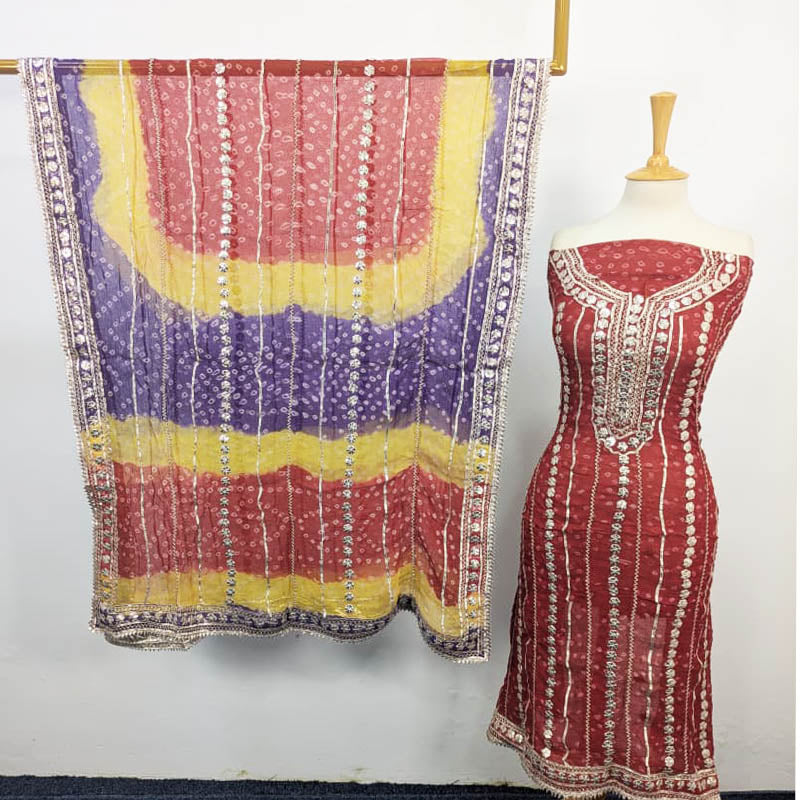 Fancy Bamber Chiffon With Chunri + Gotta Work 2PC Unstitched