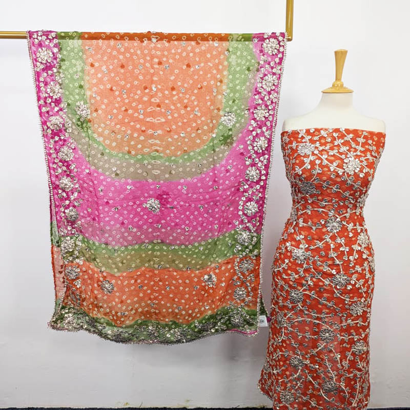 Handmade Bamber Chiffon With Chunnri Gotta Work Dupatta