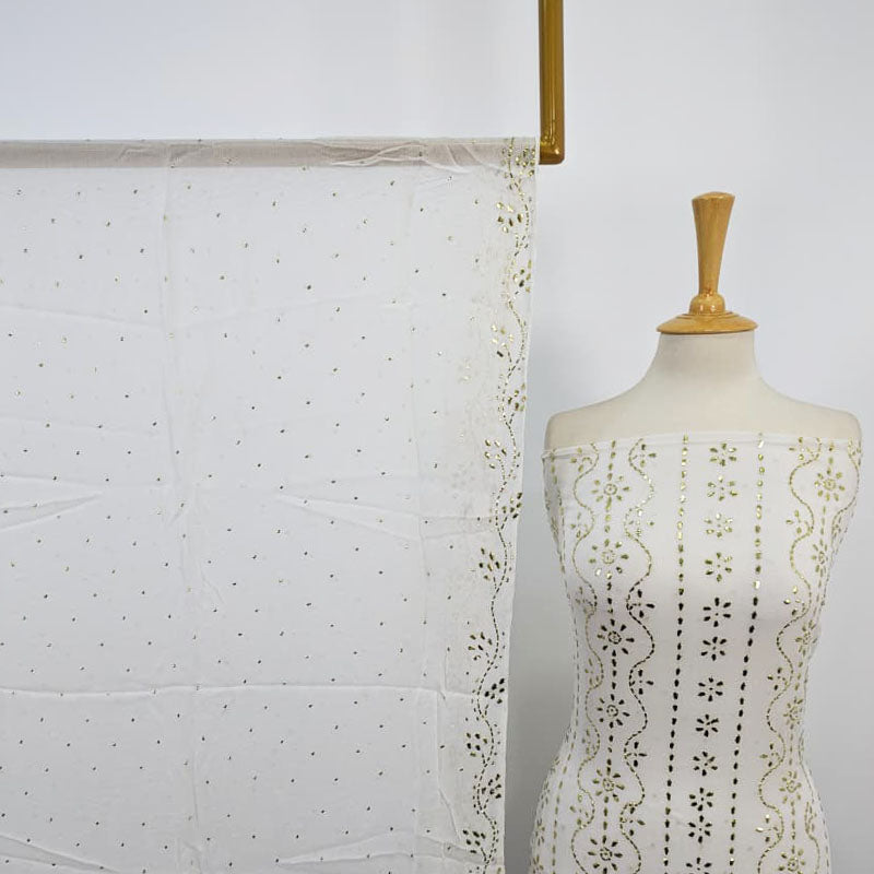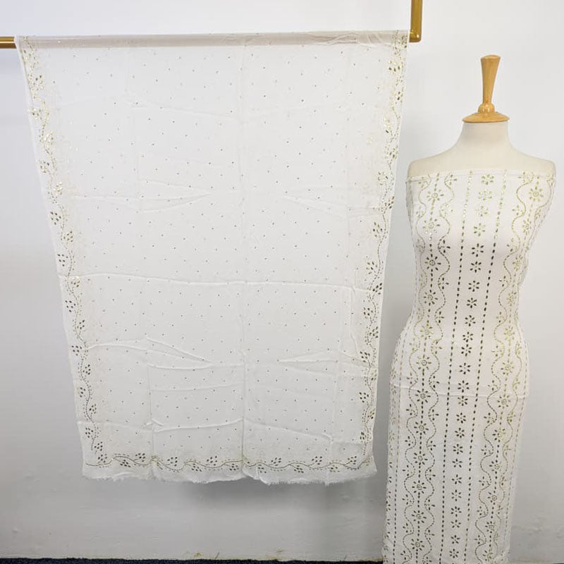 Fancy Bamber Chiffon with Full Jaal Golden Mukesh Work  2PC Unstitched