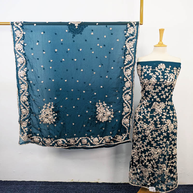Fancy Handmade Chiffon with Full Jaal Gotta Work 2PC Unstitched Suit