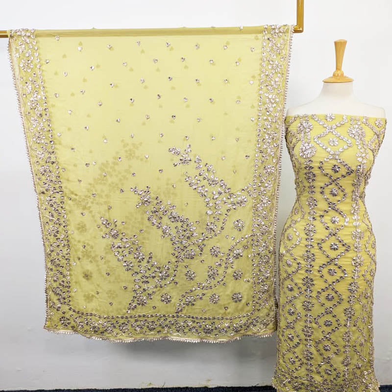Fancy Handmade Chiffon Full Jaal Gotta Work with 4 Sided Border Dupatta 2PC Unstitched Suit