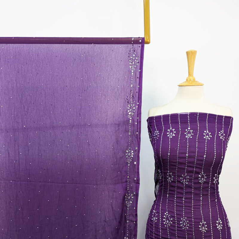 Fancy Chiffon with Full Jaal Handmade Mukesh Work Shirt Dupatta 2PC Unstitched