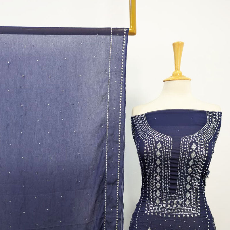 Fancy Chiffon with Full Jaal Handmade Mukesh Work Shirt Dupatta 2PC Unstitched