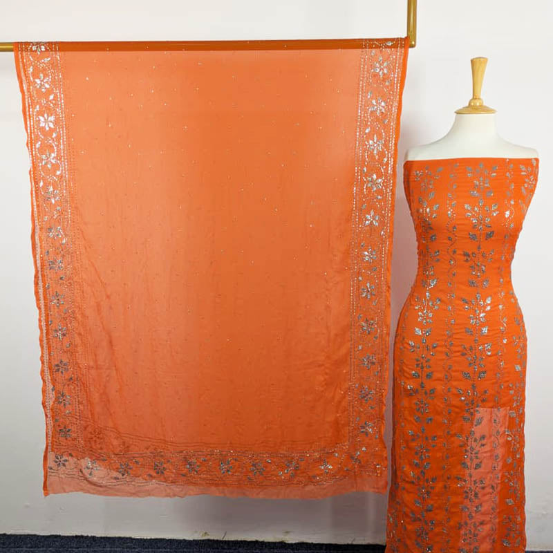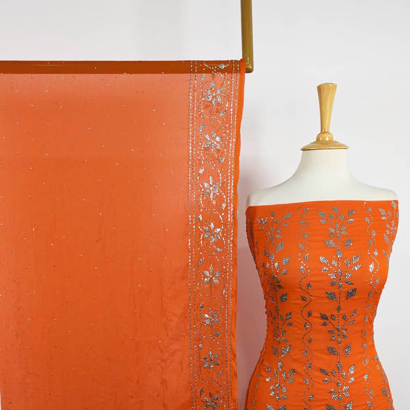 Fancy Chiffon with Full Jaal Mukesh Work & 4 Sided Border Dupatta 2PC Unstitched