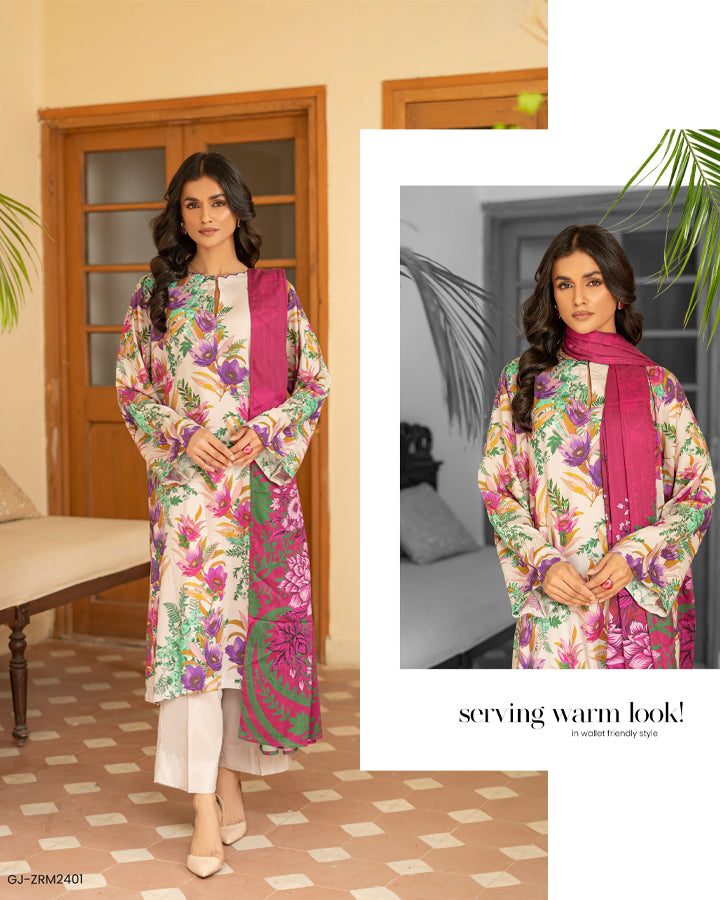 Fancy Digital Printed Stripe Linen 3PC Unstitched Zarmina Vol -1 By Gull Jee