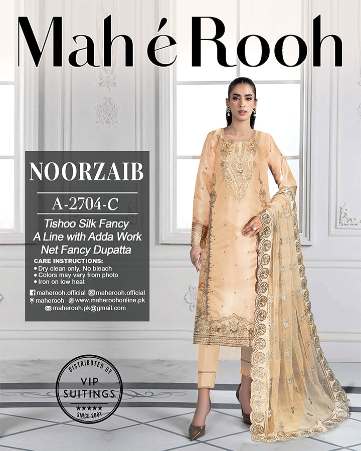 Fancy Embroidered Adda Work Tissue Silk A Line Shirt with Fancy Net Dupatta 3PC Unstitched - Mah e Rooh (Noorzaib)