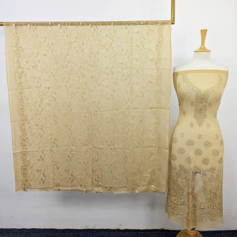 Fancy Embroidered Chiffon with Chikankari Work Shirt