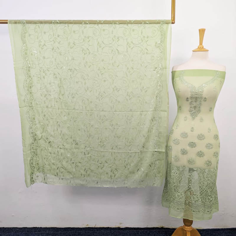 Fancy Chiffon with Embroidered + Chikankari Work 2PC Unstitched