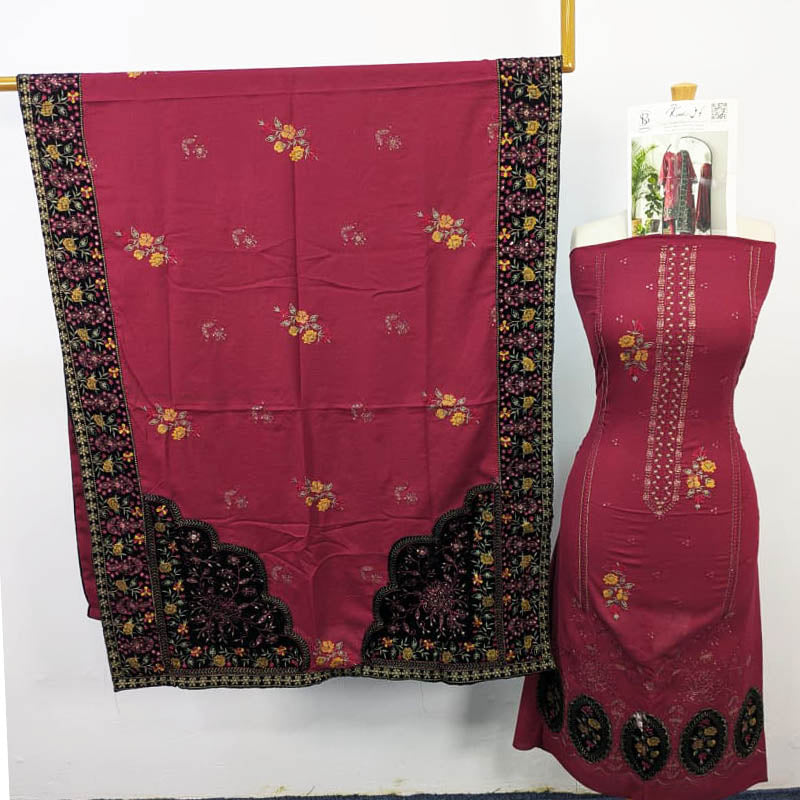 Fancy Embroidered Dhanak With Tilla Velvet Motive Work 3PC Unstitched - Komal