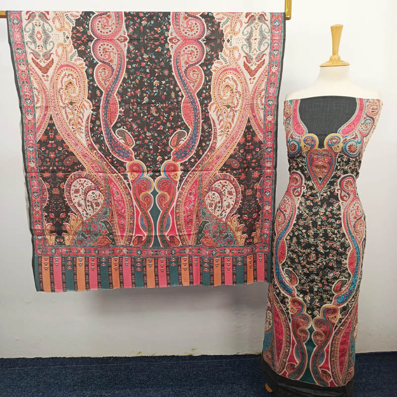 Fancy Embroidered Pure Kani Silk Wool 3PC Unstitched