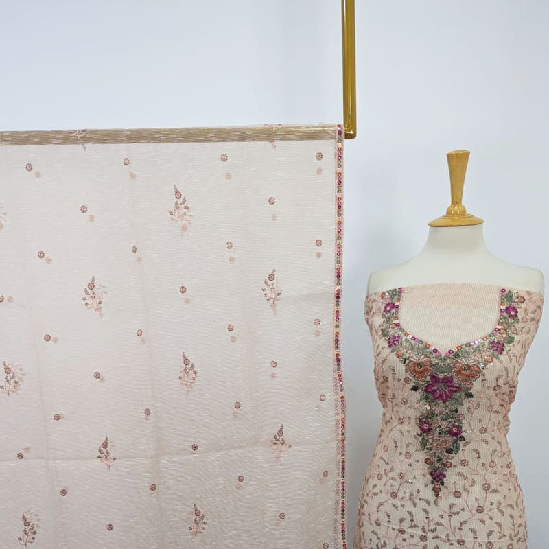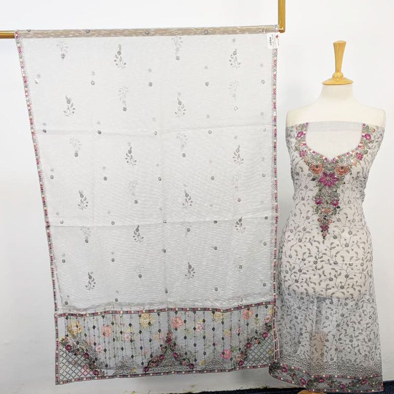 Fancy Khadi Net with Embroidered Work 2pc Unstitched Suit