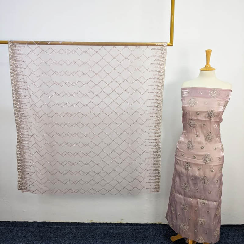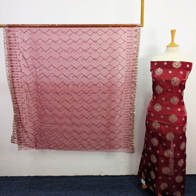 Fancy Embroidered Korean Silk With Net Dupatta 2PC Unstitched