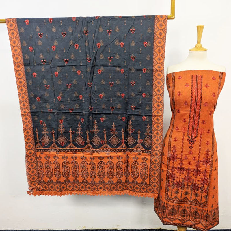 Fancy Embroidered Lawn With Lace Border Dupatta 3pc Unstitched Suit