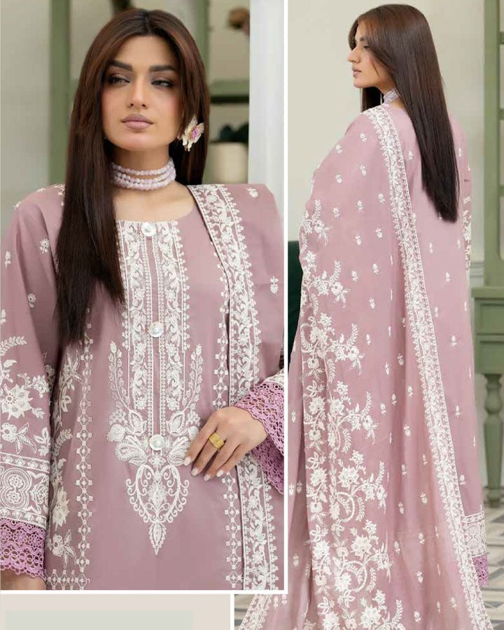 Fancy Embroidered Lawn Shirt with Embroidered Lawn Voile Dupatta 3PC Unstitched By Wania (Mahnoor) Vol-01