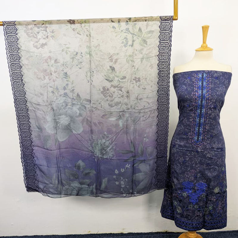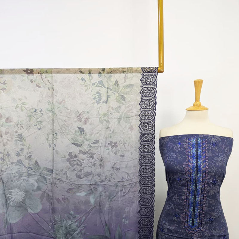 Fancy Embroidered + Printed Lawn Shirt with Digital Printed Dupatta 3pc Unstitched Suit