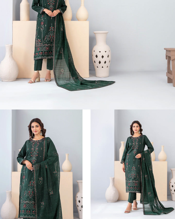 Fancy Embroidered Viscose Slub 3PC Unstitched By Tawakkal Brand