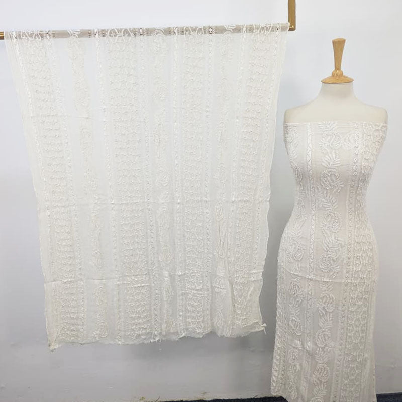 Fancy Handmade Pure China Crinkle with Tarkashi + Shadow Work Dyeable 2pc Unstitched Suit