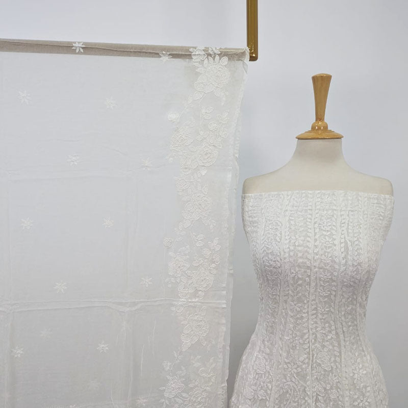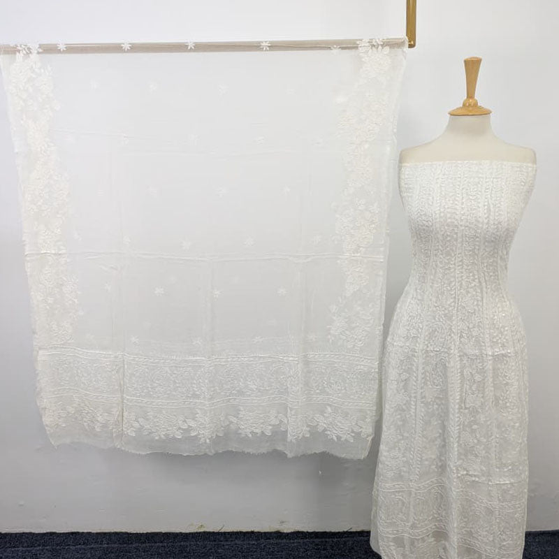 Premium Handmade Pure China Crinkle Chikankari Work Dupatta