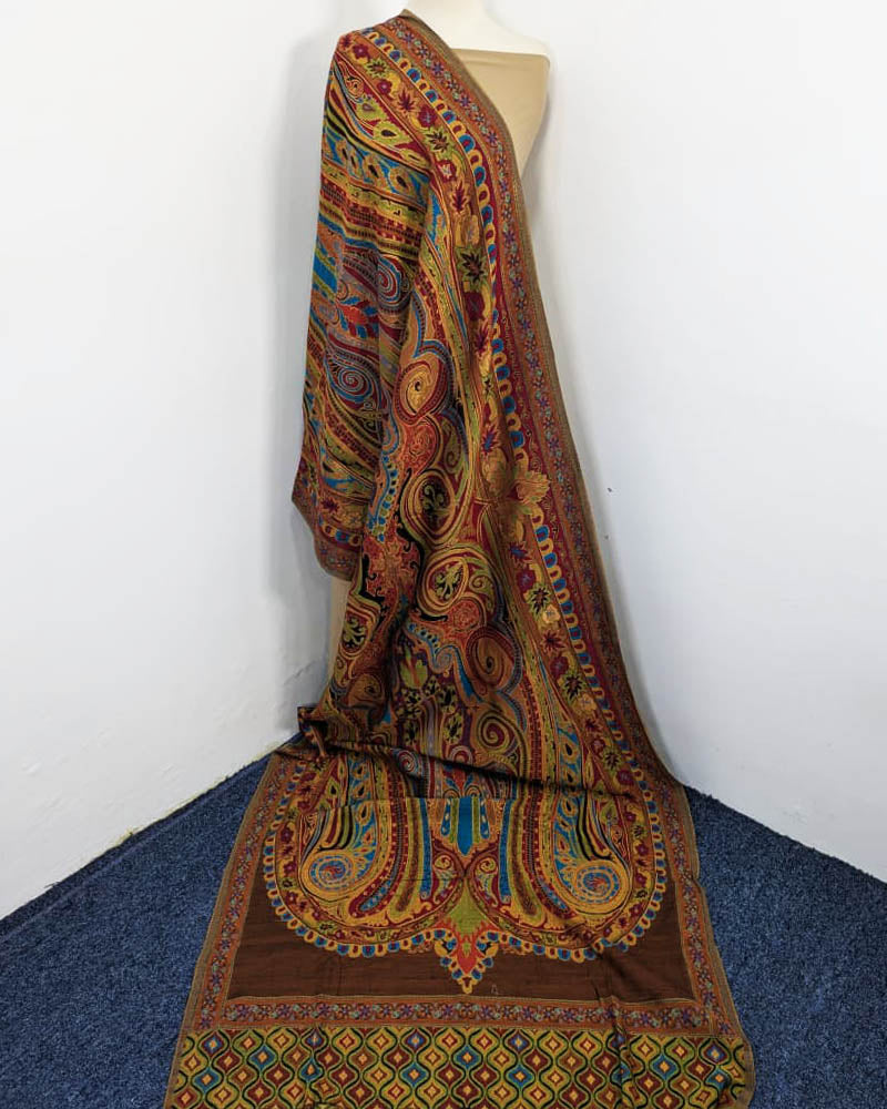 Fancy Pure Kani Silk Shawl with Shah Jahan Style Work (Ready To Wear)