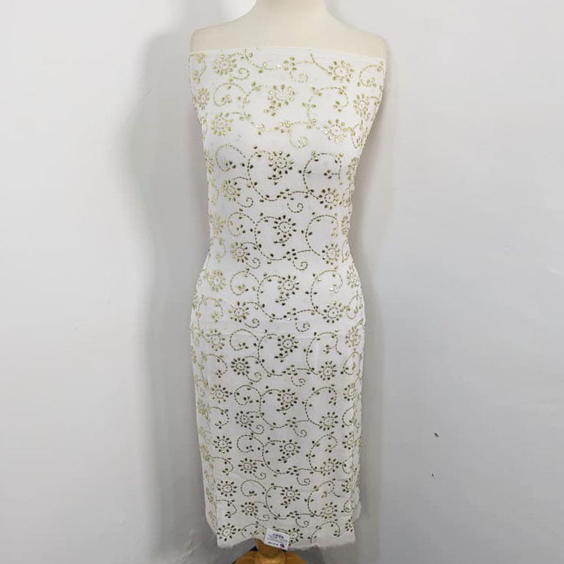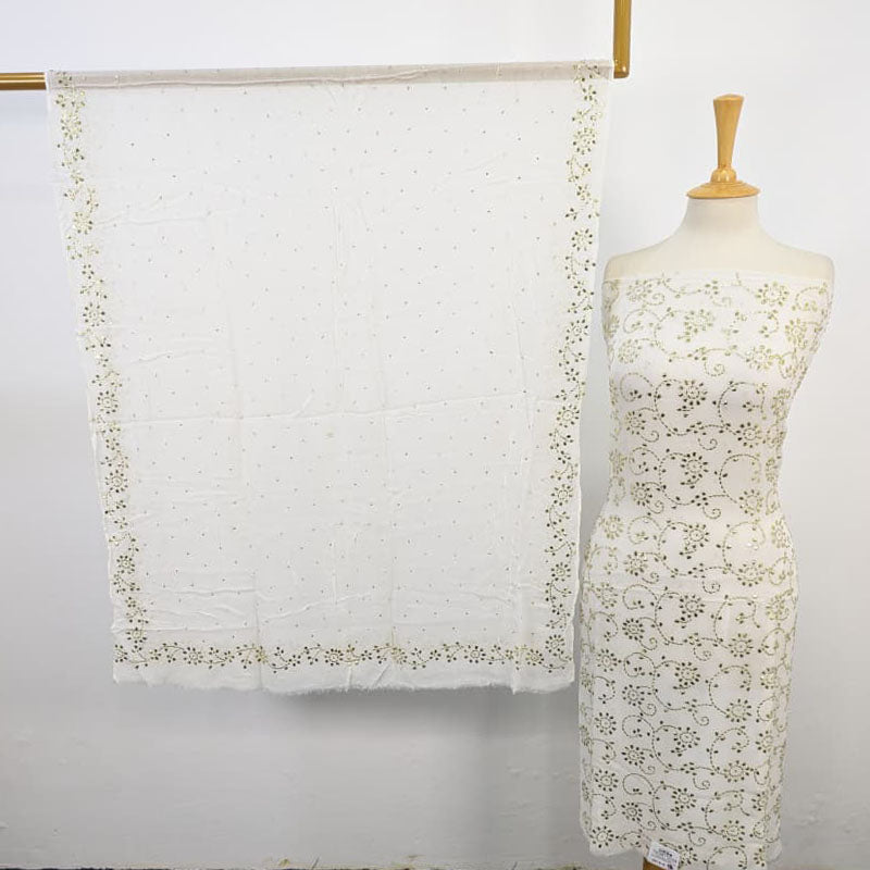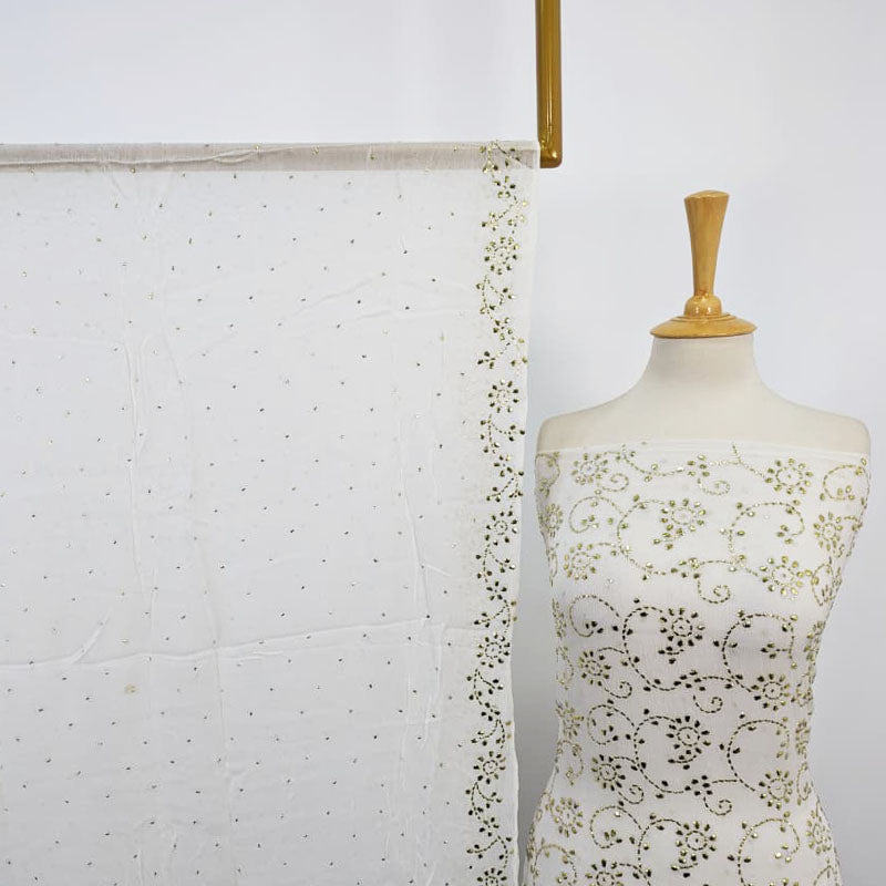 Fancy Bamber Chiffon with Full Jaal Golden Mukesh Work 2PC Unstitched