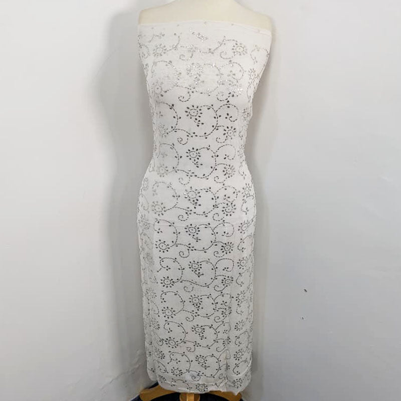 Fancy Bamber Chiffon with Full Jaal Silver Mukesh Work 2PC Unstitched