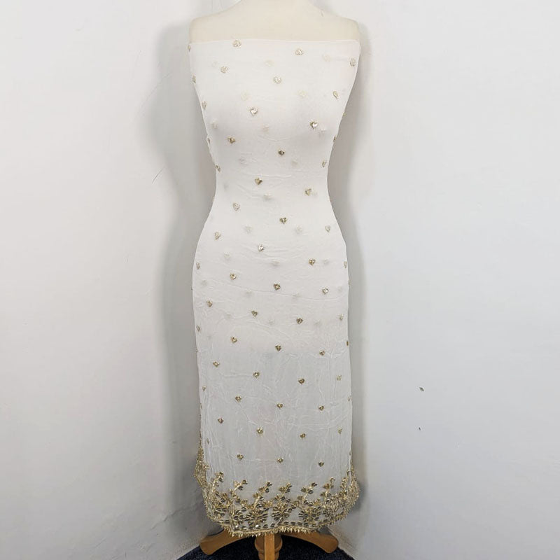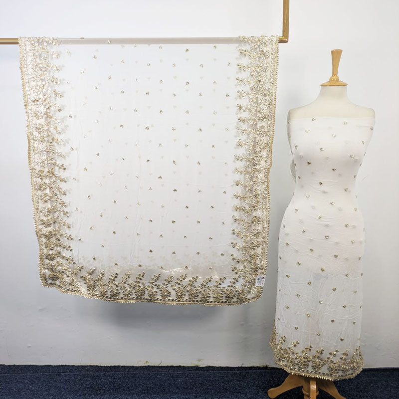 Fancy Bamber Chiffon with Golden Gotta Work & 4 Sided Border Dupatta 2PC Unstitched