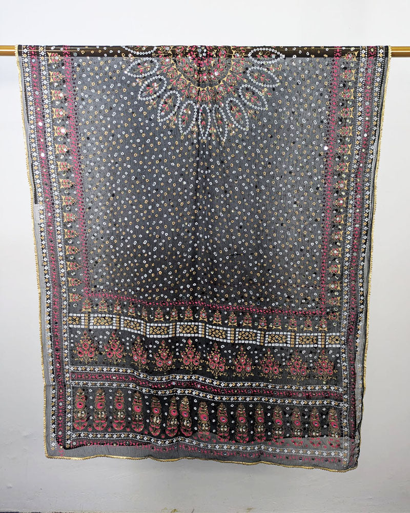 Fancy Chiffon with Chunnri Block Print + Mirror & Sitara Work Dupatta (Ready To Wear)