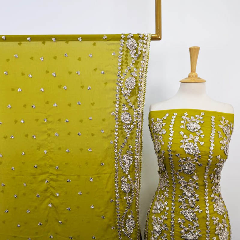 Fancy Handmade Chiffon Full Jaal Gotta Work with 4 Sided Border Dupatta 2PC Unstitched Suit