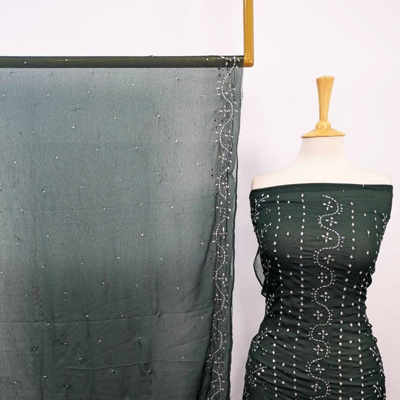 Fancy Handmade Full Jaal Mukesh Work Chiffon Shirt Dupatta 2PC Unstitched