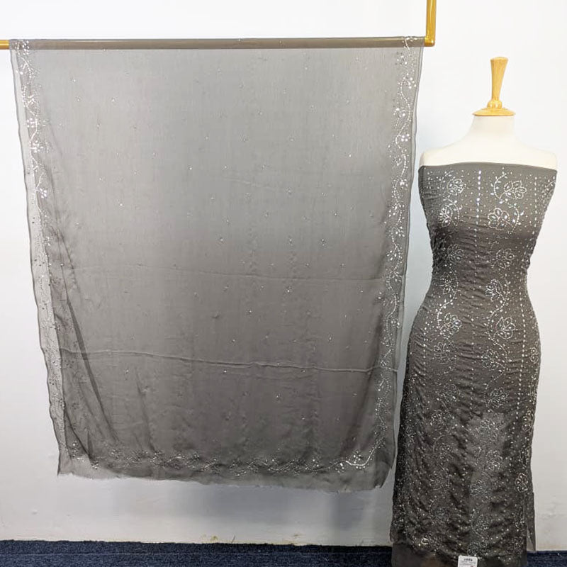 Fancy Handmade Full Jaal Mukesh Work Chiffon Shirt Dupatta 2PC Unstitched