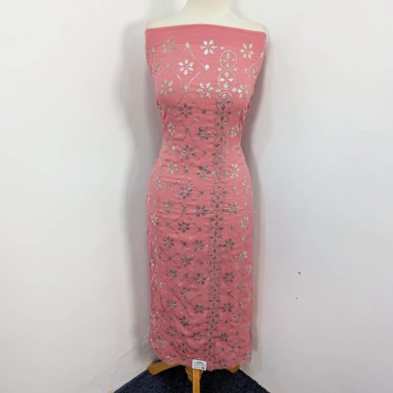 Fancy Full Jaal Handmade Mukesh Work Chiffon Shirt & 4 Sided Border Dupatta 2PC Unstitched