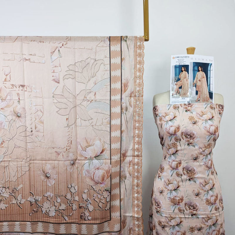 Fancy Digital Embroidered Lawn with Voil Dupatta 3Pc - Sobia Waseem (Mehwar 0.1)