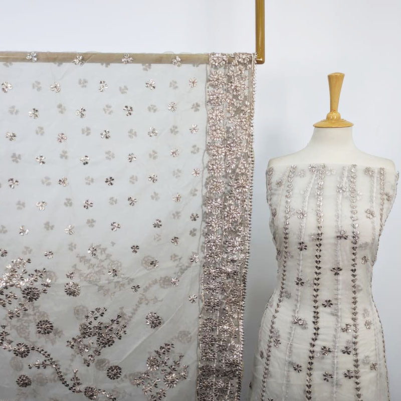 Fancy Dyeable Organza with Gotta Work Frock 2 Pc Unstitched