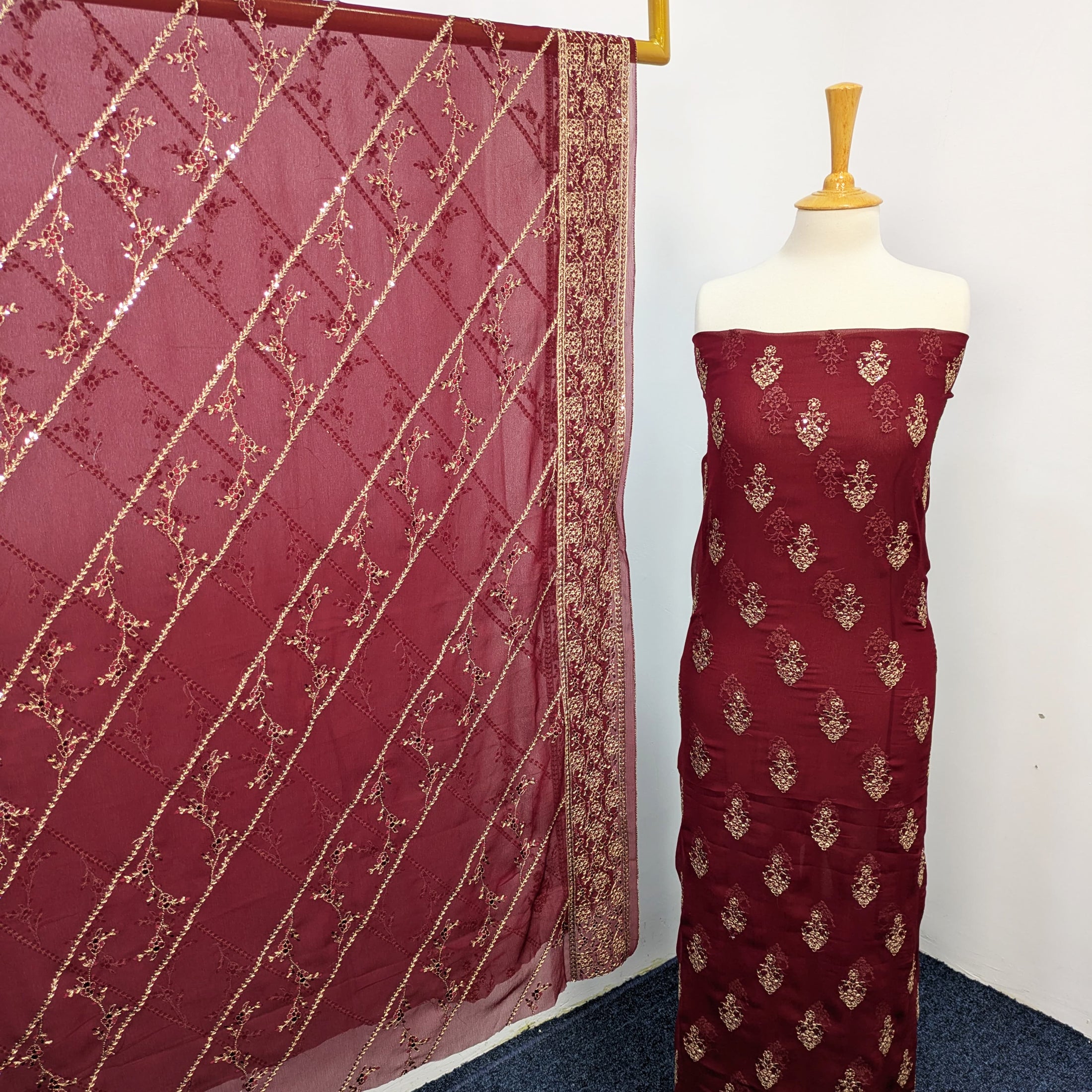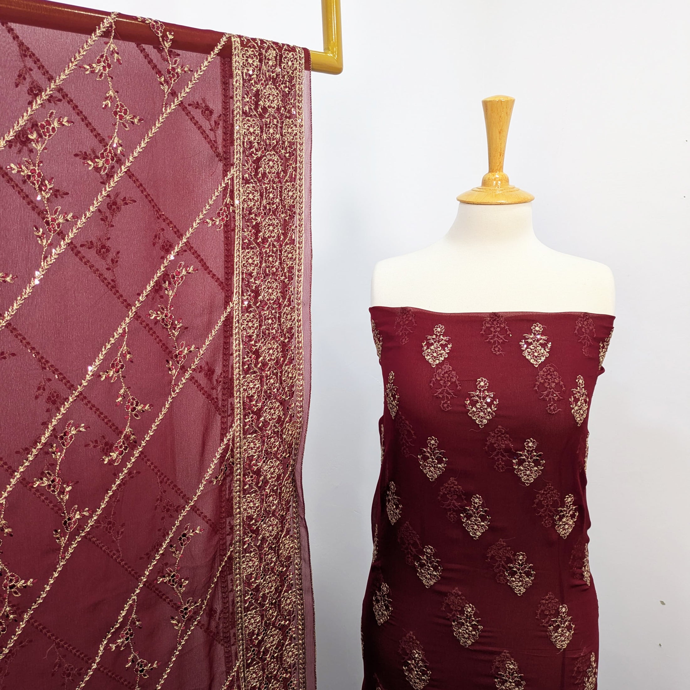 Fancy Chiffon Full Jaal with Embroidered shirt & Dupatta 2pc suit