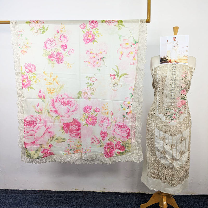 Fancy Embroidered Chikankari Work Lawn Shirt with Fancy Printed Silk Dupatta 3PC Unstitched By daa. Vol-2000