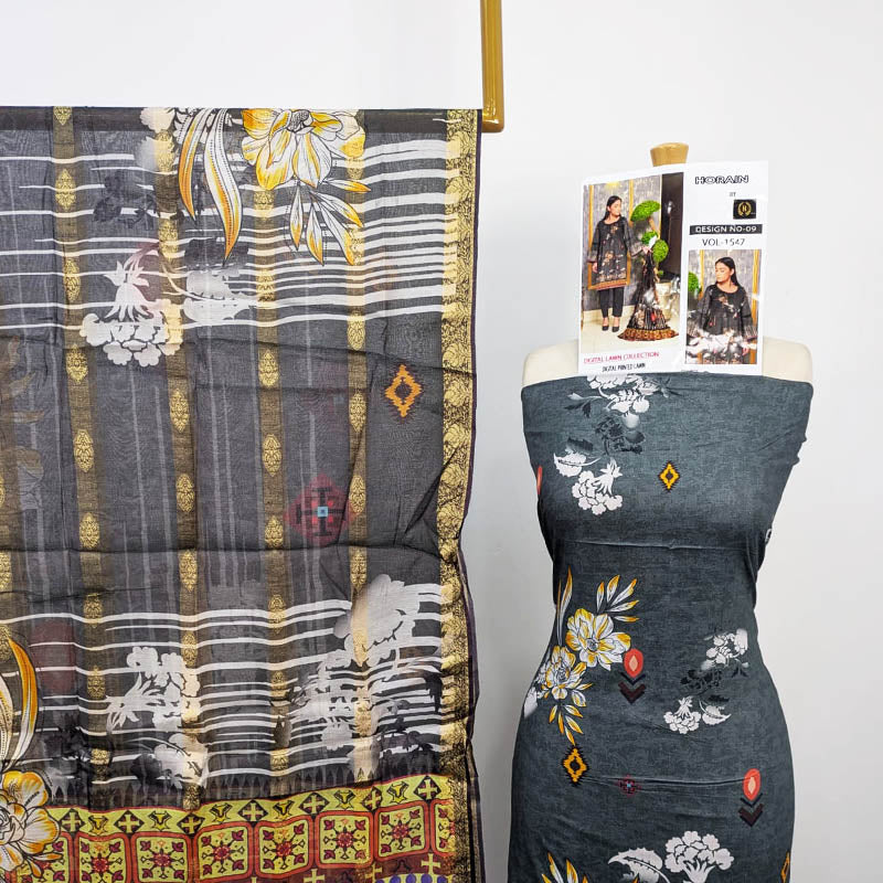 Fancy Lawn with Embroidered + Digital Printed Work 3Pc Unstitched
