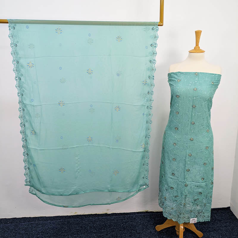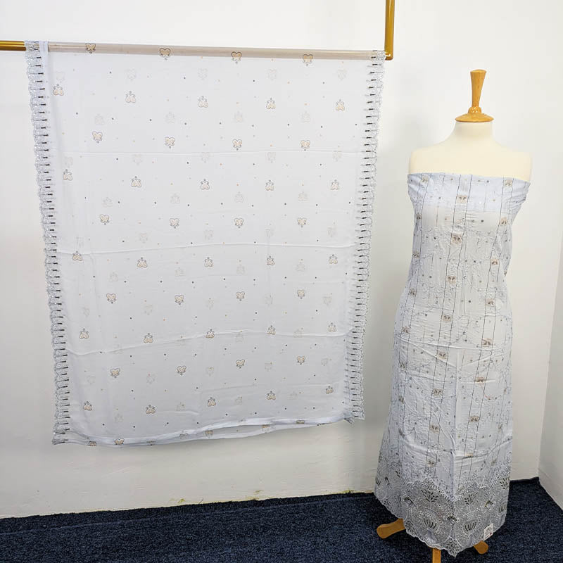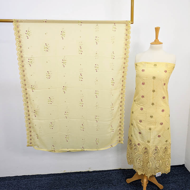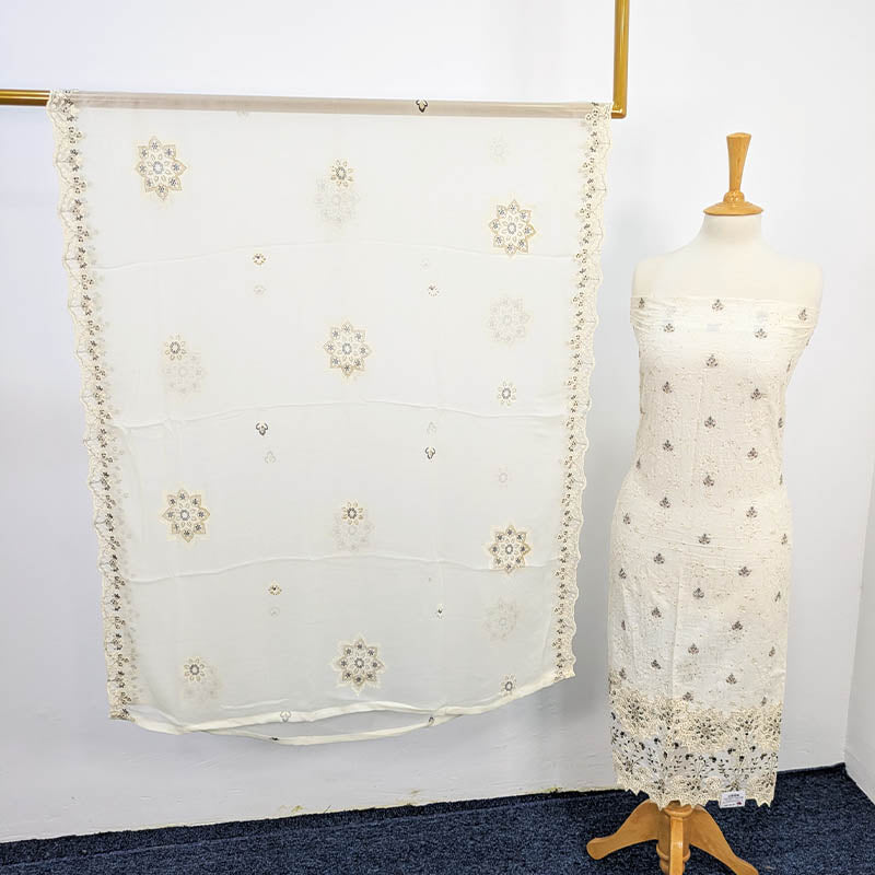 Fancy Embroidered Lawn With Chiffon Dupatta 3pc Unstitched