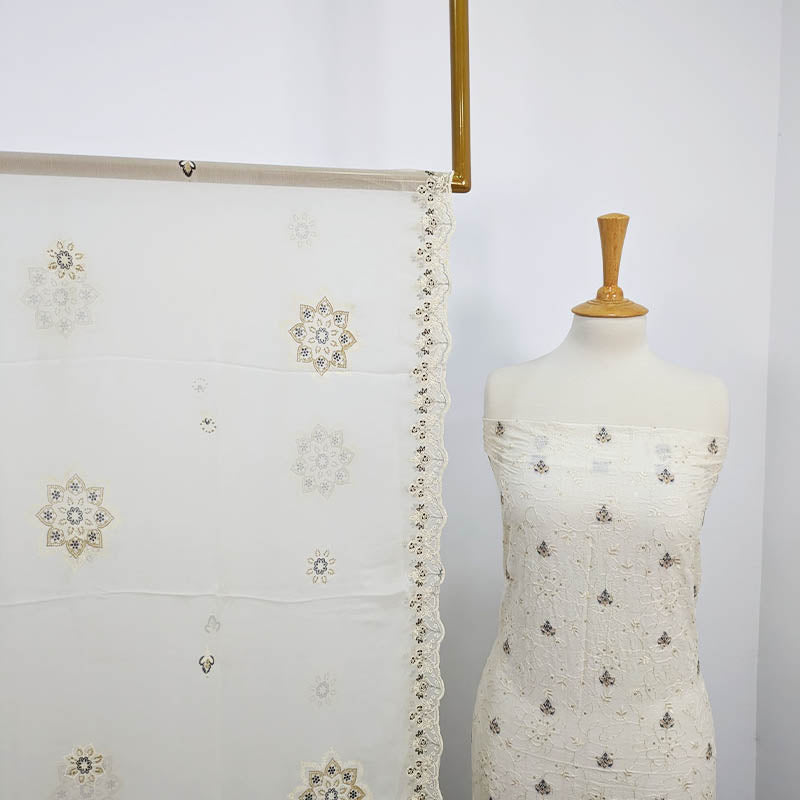 Embroidered Chiffon With Cutwork 2 Sided Border Dupatta