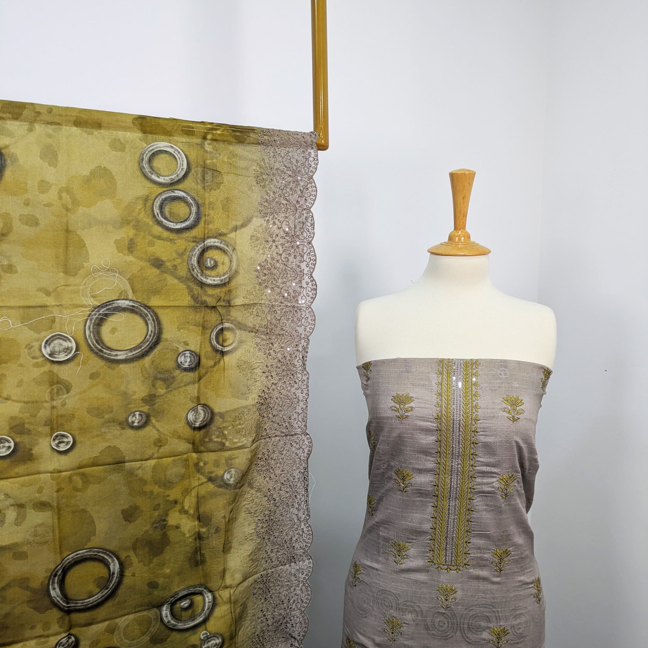 Fancy Embroidered Lawn with Chikankari + Printed Dupatta  3piece Unstitched
