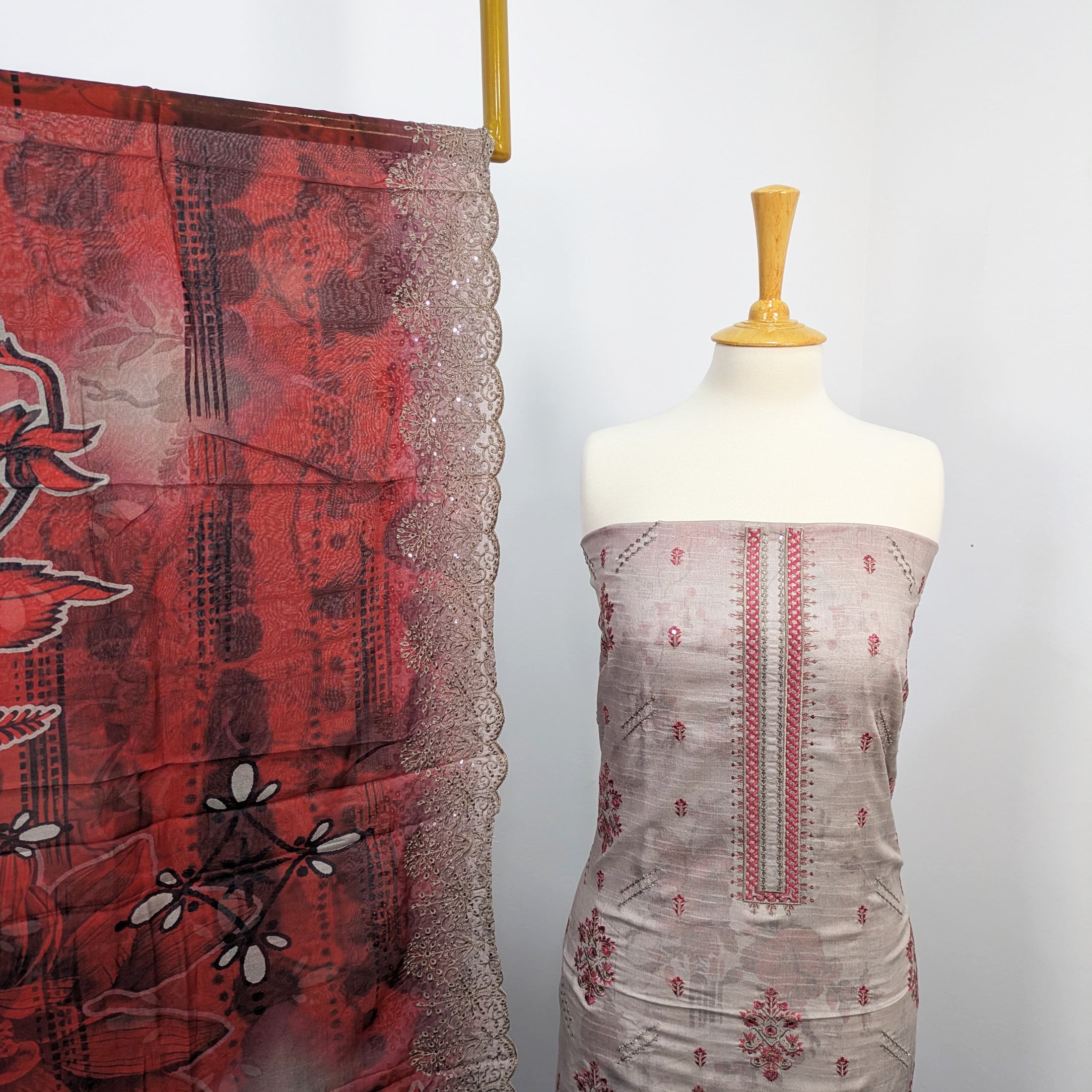Fancy Embroidered Lawn with Chikankari + Printed Dupatta  3piece Unstitched