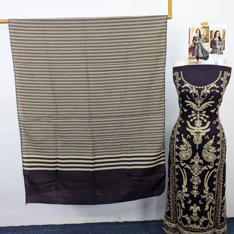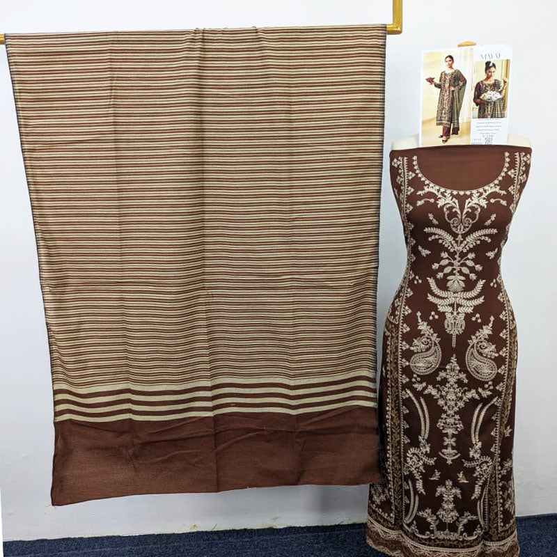 Premium Embroidered Peach Slub with Wool Pashmina Shawl 3PC Unstitched By Sobia Waseem - Vol-2346