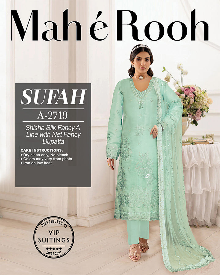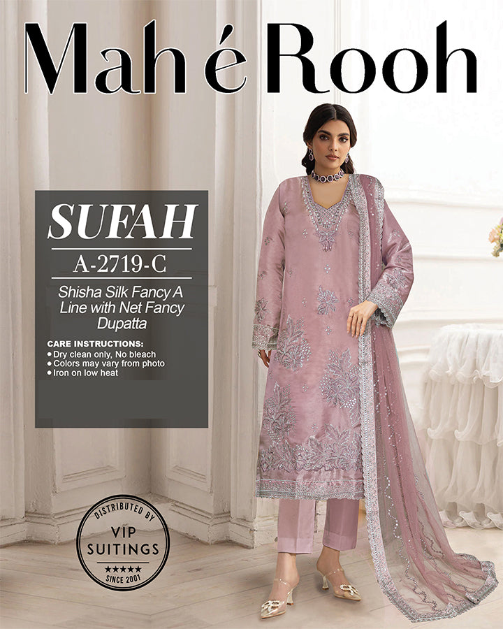 Fancy Embroidered Shisha Silk A Line Shirt with Fancy Net Dupatta 3PC Unstitched - Mah e Rooh (Sufah)