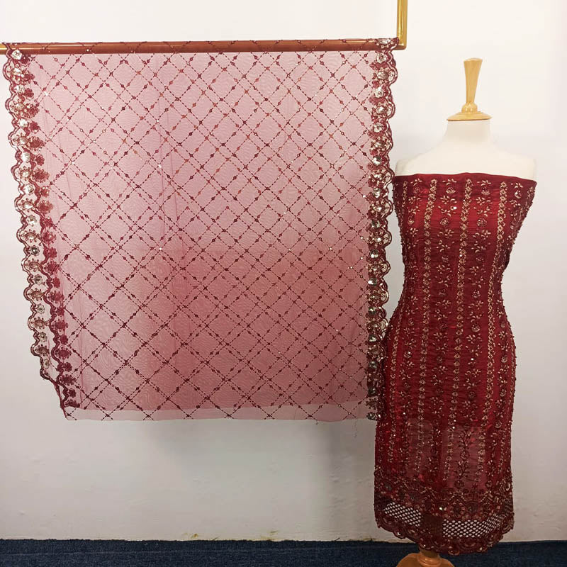 Fancy Embroidered Silk With Net Dupatta 2PC Unstitched