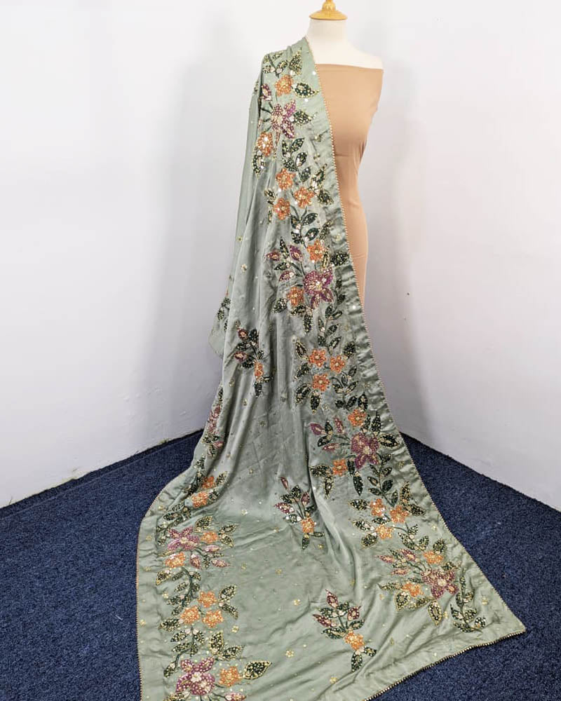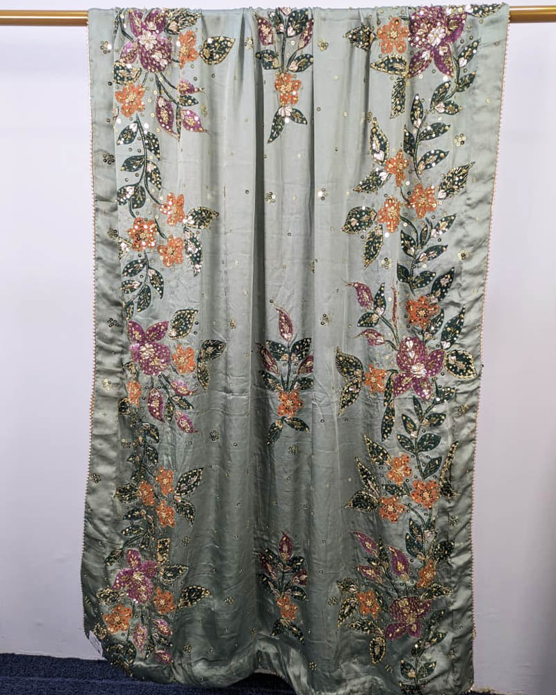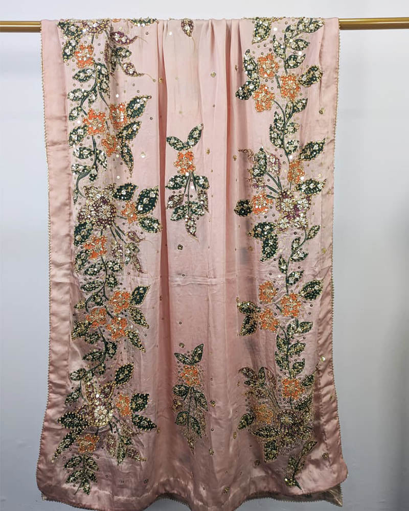 Fancy Handmade Silk With Oil Paint + Gotta Stone Work Dupatta