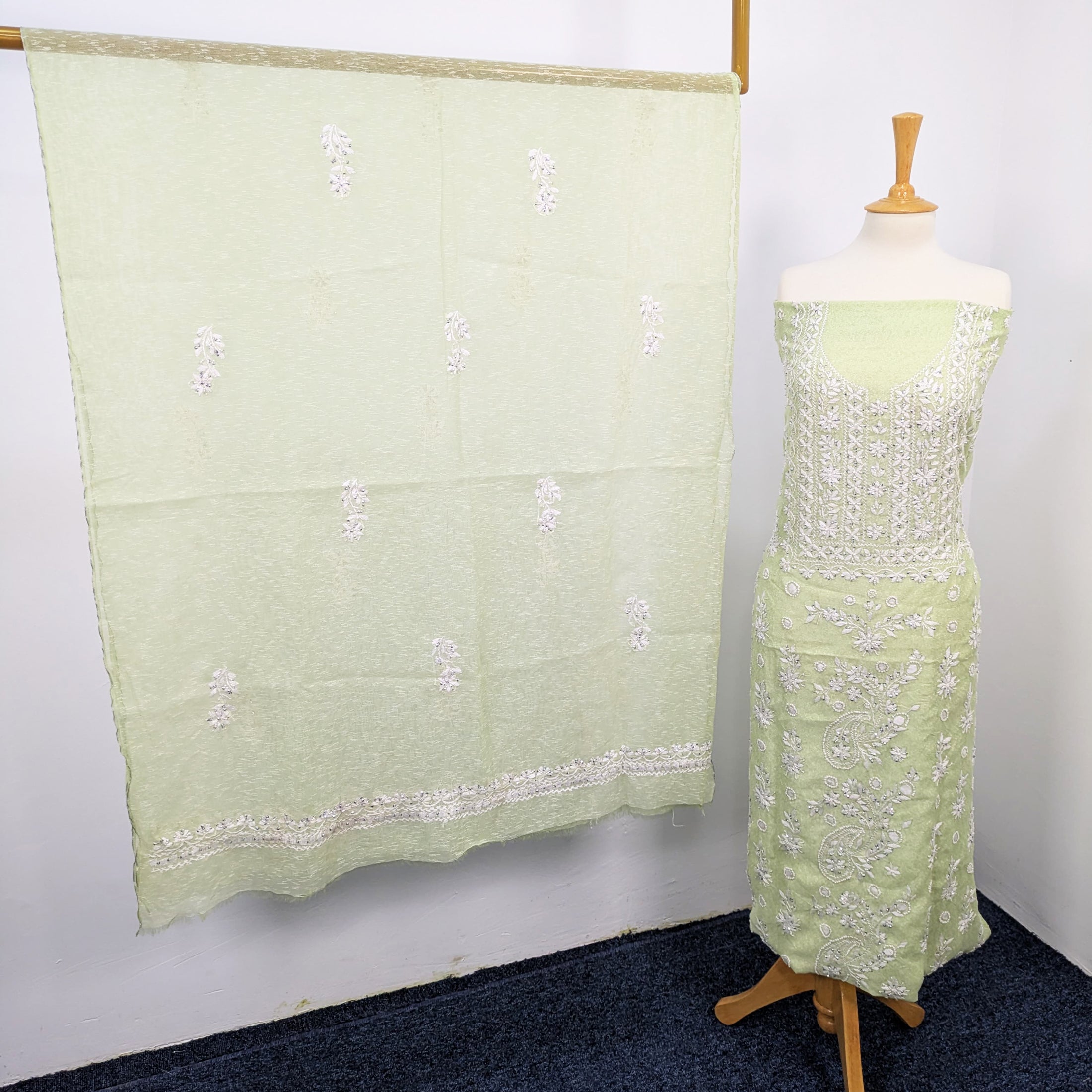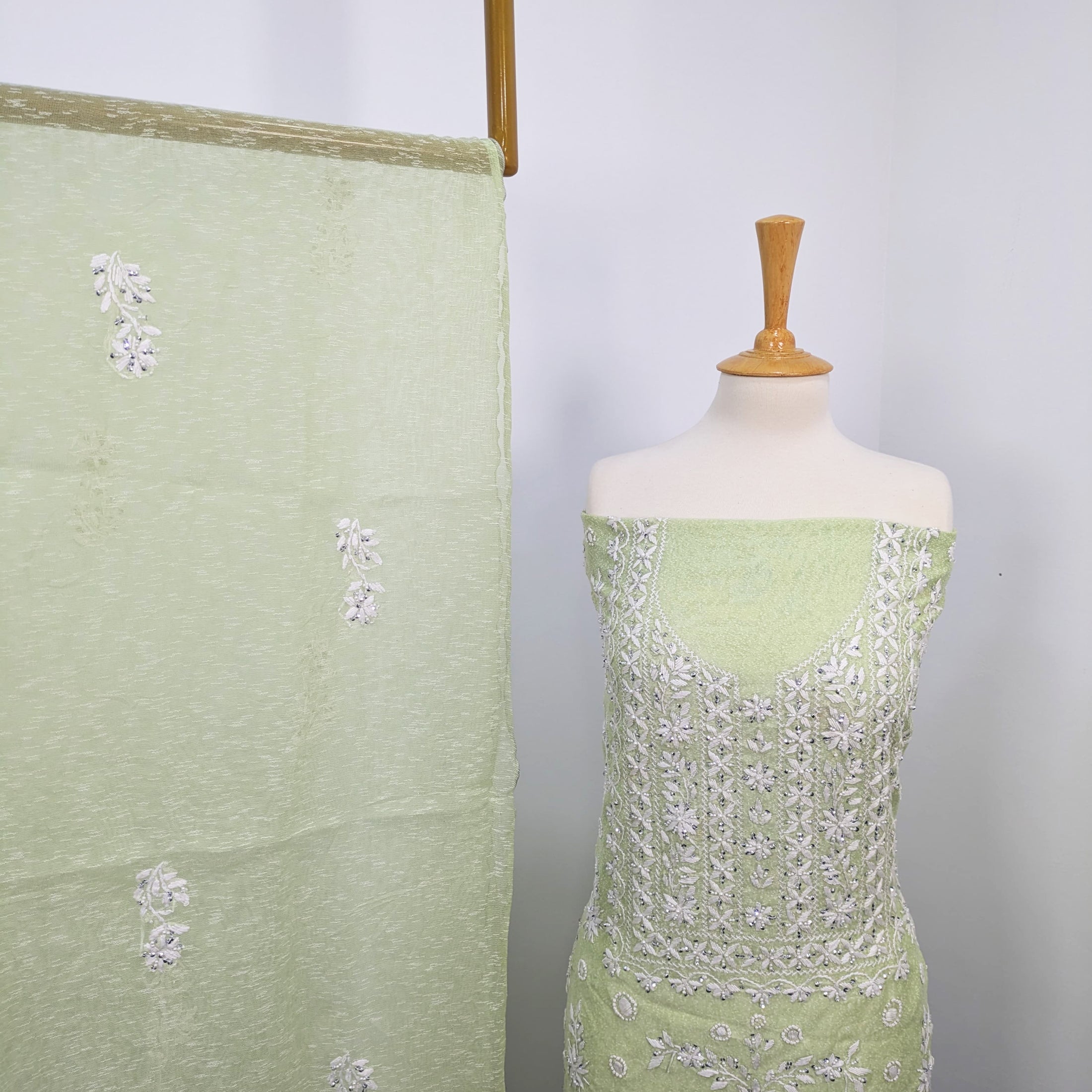 New Fancy Handmade karandi With Kacha Tanka + Pulse Sitara Work Full Jaal Shirt & Dupatta 2pc Unstitched Suit