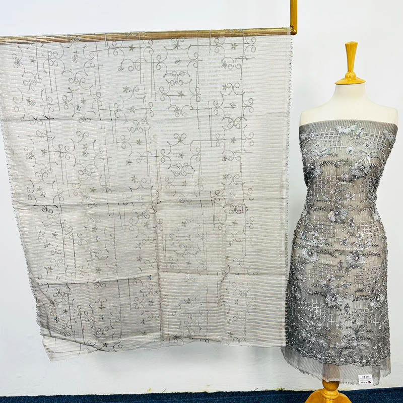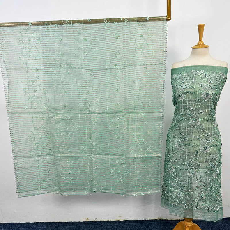 Fancy Organza with Zari + Stone Work 2pc Unstitched Suit