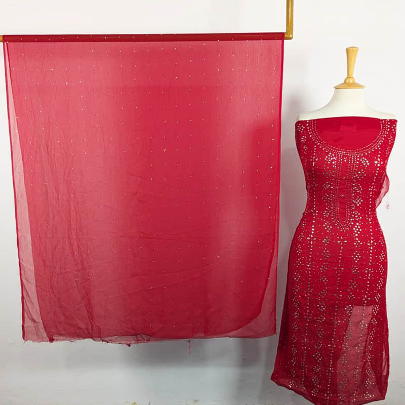 Fancy Chiffon with Handmade Mukesh Gala Work Shirt & Dupatta 2PC Unstitched