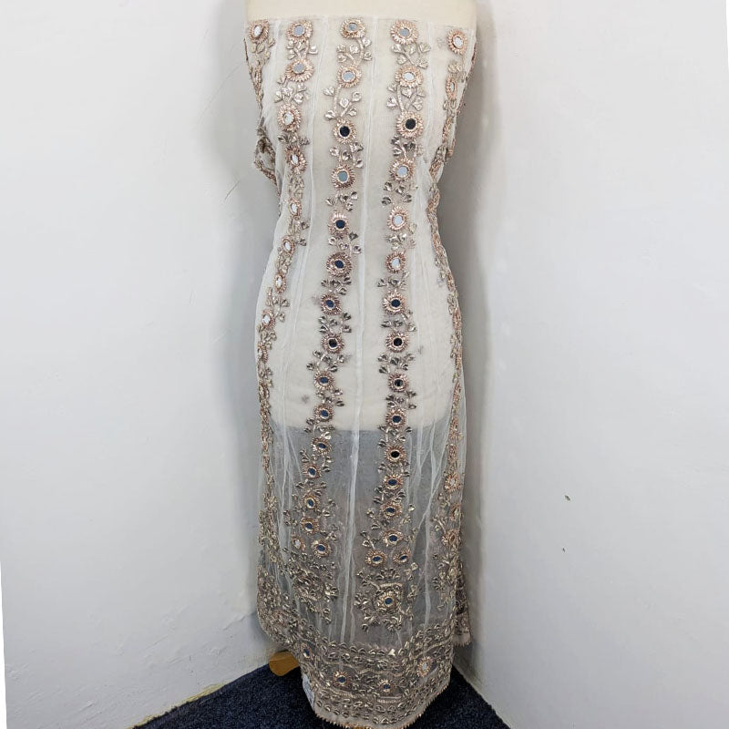 Fancy Net with Handmade Gotta + Mirror Work Frock & 4 Sided Border Dupatta 2Pc Unstitched