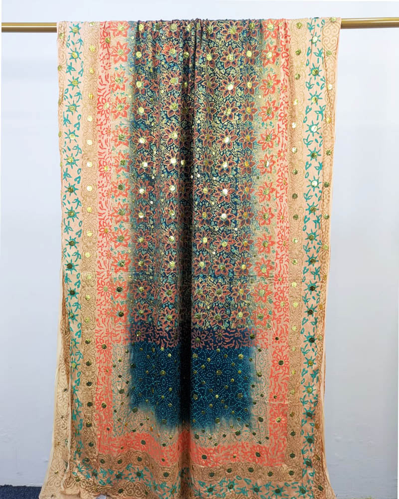 Fancy Pure Indian Gajji Silk Dupatta with Mukesh + Block Print Work (Ready To Wear)