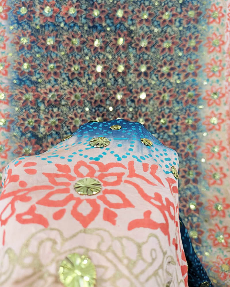 Pure Indian Gajji Silk with Mukesh + Block Print Work Dupatta